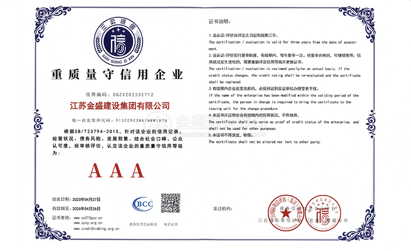 先后被我省市命名為"重合同,守信用"企業(yè),"AAA"級(jí)施工單位和 施工單位